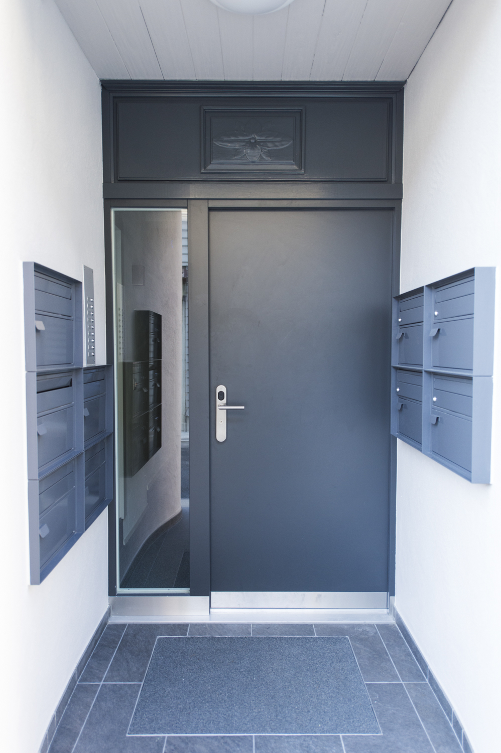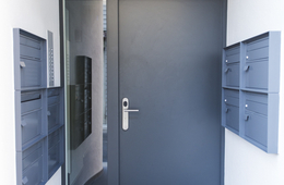 Jedes Zimmer verfügt über eine eigene Klingel mit Gegensprecheranlage und Türöffner. Die Briefkästen können sowohl normale Post als auch kleinere Pakete lagern. Der Eingangsbereich wird videoüberwacht.